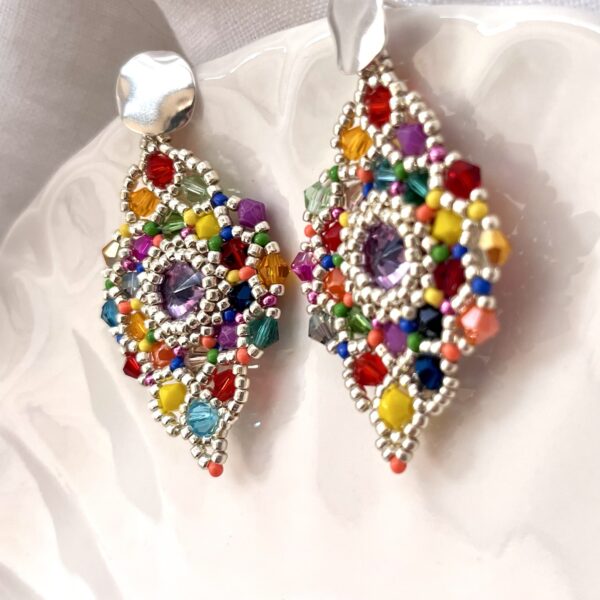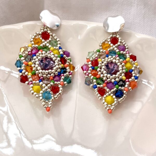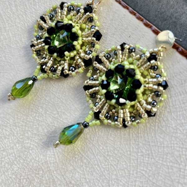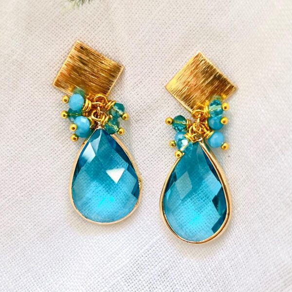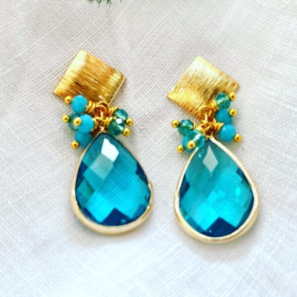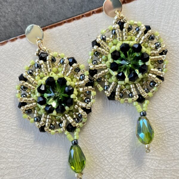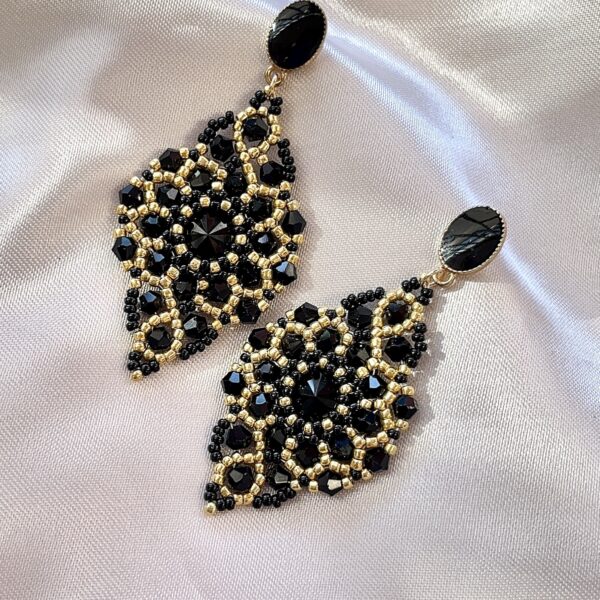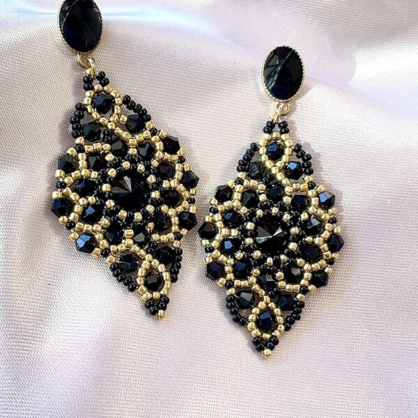 Realizado con aplicaciones enchapadas en oro y perlas colgantes de fantasía.